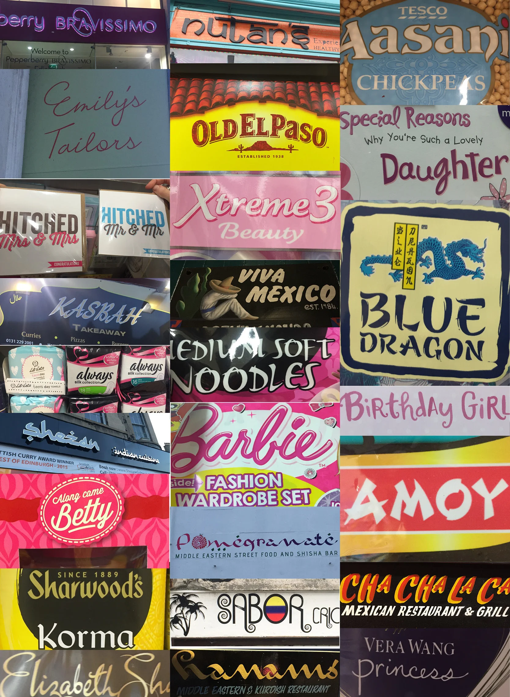 I am fed up with fonts that perpetuate negative stereotypes. This sort of design is seen all over public spaces. It is seen in the gendering of fonts used on the signs of lingerie stores and in greeting cards. It is visible in the appropriation of “Asian” themed fonts on takeout menus. It is inescapable and I take personal offense to it. I really don’t feel that I need to be reminded of my gender stereotypes while purchasing deodorant or a box of tampons.